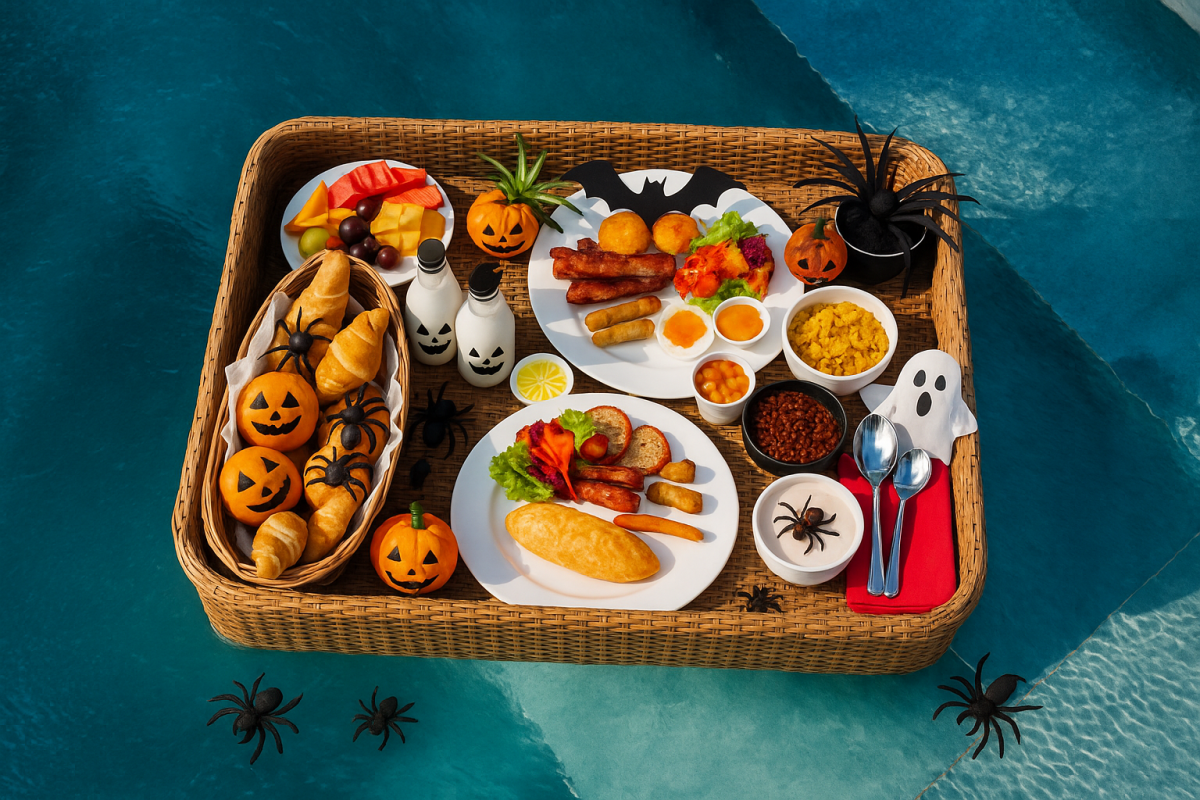 Set sail this Halloween to a mysterious Pearl island full of hidden treasures. Start your day as a stylish pirate with our signature “Floating Treasure Breakfast” served on the calm waters of our pool. Enjoy sweet “loot” from fresh fruits, pastries, and refreshing juices, a perfect feast for any pirate