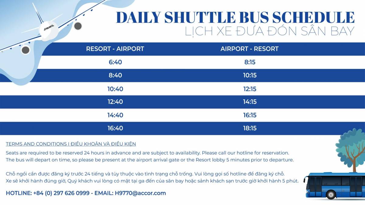 – Seats are required to be reserved 24 hours in advance and are subject to availability. Please call our hotline +84 (0) 297 6260 999 or email H9790@accor.com for reservation.