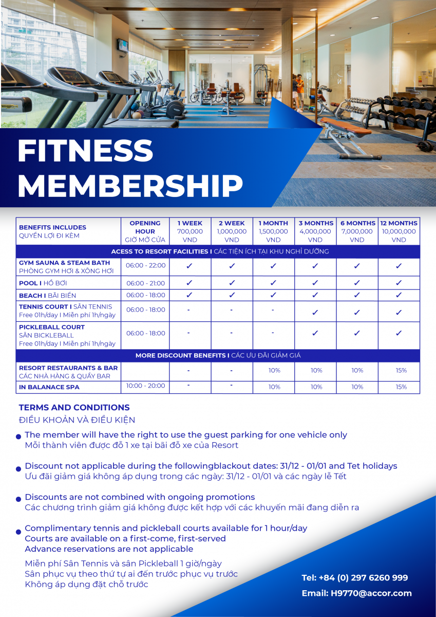 Nếu vừa muốn tập khỏe, vừa muốn thư giãn trong không gian hiện đại, thì gói Hội viên Fitness tại Novotel Phú Quốc Resort là dành cho bạn!